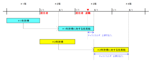 たとえば、×2年6月1日から×3年1月1日までに退職(帰国)した場合、賦課期日の×2年1月1日には日本国内に住所があるため、×1年所得に対する住民税は支払う義務があります。